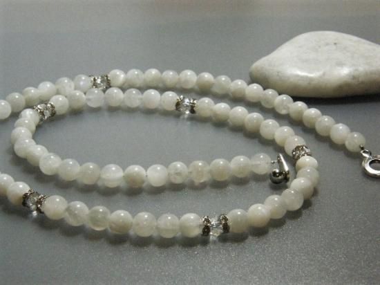 インド産で硬質、白濁したムーンストーン・ビーズを使用しています。