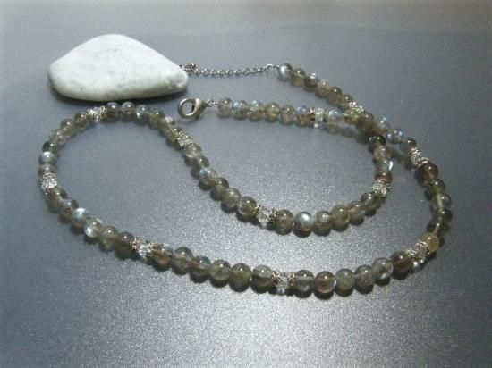 43、ラブラドライト6mm+水晶FA 50cm \1,2000→5割引\6,000