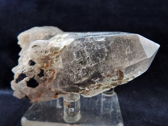 神聖山の霊気を充填された水晶として著名な、ネパールのガネーシュ・ヒマラヤ連峰産の高山地帯で採掘された水晶です。ガネーシュ・ヒマールはネパールの首都カトマンズ市の北方にあって、財運の象頭神ガネーシュにちなむ名前。行きも帰りも徒歩だけが頼りの山道を数日かけてのぼり、手掘りしてくると聞いています。聖なる土地にあるモノには聖なる力が宿っているといわれてきました。霊峰のエッセンスが宿っているかのような水晶です。ガネーシュ・ヒマール産水晶ポイントの多くは先細りタイプ、緑色内包物の多くはクローライト(緑泥石)です。展示用プラスチック製ペグスタンド(新品ではありません)をいっしょにお送りします。