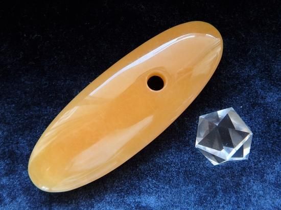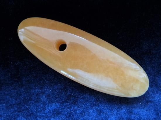 サイズ:約100x35x15mm、88g。 中国産原石を使用しています。イエロージェードは金運獲得と疲労回復、気力の増強によく効くパワーストーンです。運勢が下降気味のとき運気の上昇を後押しするといわれています。イエロージェードの黄色が身体のすみずみに広がっていくよう想像すると、気力の増強ともに運気も強化できます。黄色は黄金を引き寄せる色なので金運・財運ともに上昇していきます。大理石と同じほどの硬度の鉱物です。石の疲労がいちじるしいときは新品と取り替えてください。大型大珠(タイシュ)は自室に置いておくと、帰宅時の邪気祓いや部屋の浄化などに役立てられます。染色してあると思います。写真の製品をお送りします。