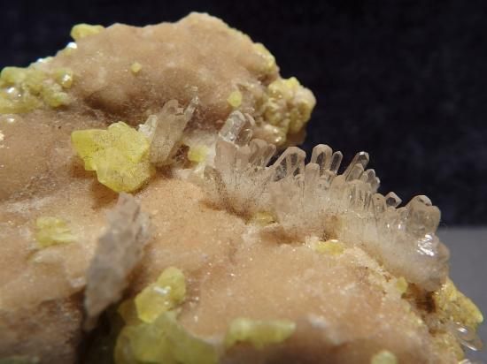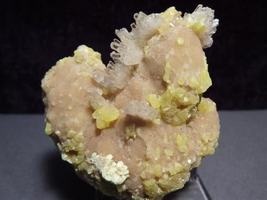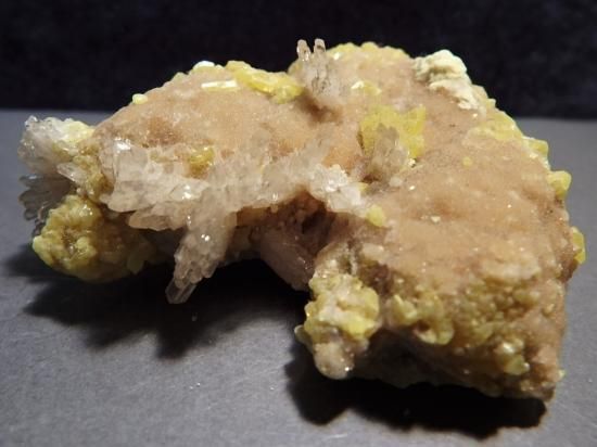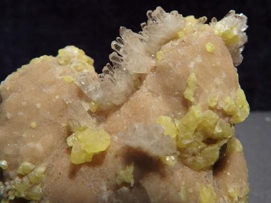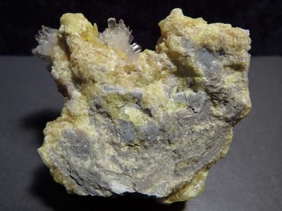 サイズ:76x73x29mm、134g。ポーランド産。セレスタイト(天晴石)はマダガスカル産の透明水色の結晶が有名ですが、こちらは無色透明で、サルファー(硫黄)に随伴していて、白と黄色の取り合わせが、すがすがしい印象を与えてくれます。セレスタイトとサルファーの組み合わせは、コレクターの間では比較的よく知られていて。ことにポーランド産が有名でしたが、すでに鉱山は閉山しているとのことです。