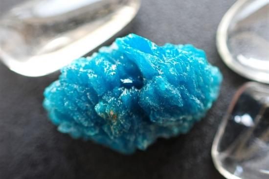 サイズ:約27x15x14mm、5.7g。インド産の青味が鮮やかでコンペイトウのようなカバンサイトです。小さな標本なのでモノサシ片手にサイズを確認しながらごらんになってください。カバンサイトはカルシウム+バナジウム+シリコンの頭文字をつなぎ合わせた名称だとか。インドではムンバイ近くのプーナという土地のゼオライト(沸石)鉱山から良質の結晶が産出します。鉱物の観察には知ったかぶりを一時(いっとき)置いて、こういうものは始めて見る、という気持ちで接するのが大事。そうすると眼が洗われて、石たちのとんでもないほどの美しさがあらわになります。