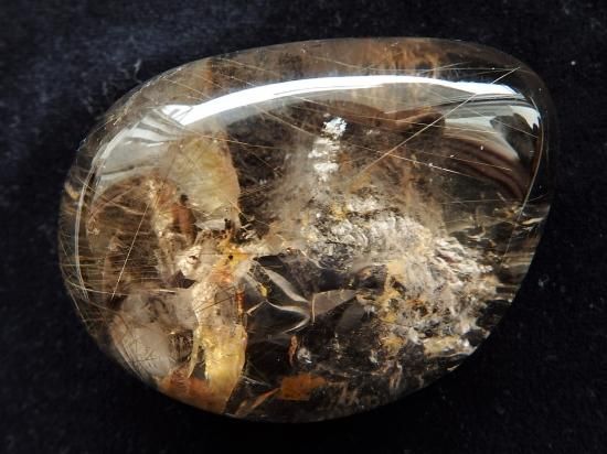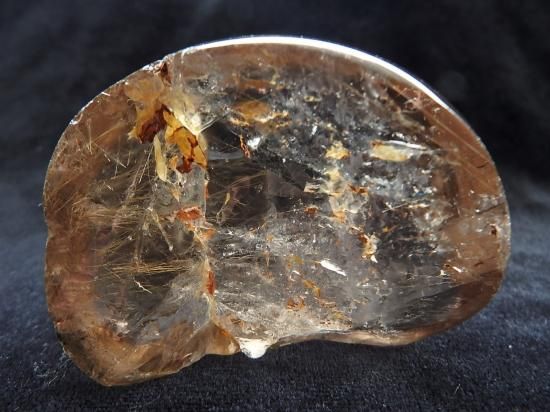 内包物のある水晶を形よくドームカット。裏面は母岩に密着していたと思われる凹凸面をそのまま残してあります。多少の赤茶色味を帯びているため、ガーデンクォーツのように見えます。細い針状ルチルがおもむきのある風景を作っています。