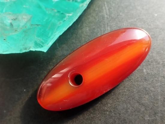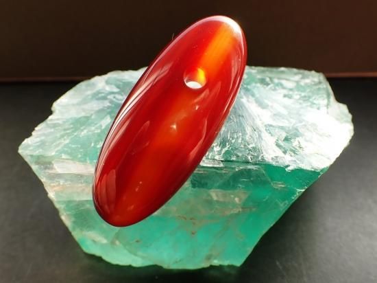 サイズ:約50x20x11mm、16g。 ブラジル産原石から制作しました。レッドアゲートの朱色は古来「辟邪(へきじゃ)の赤」とされてきました。外出先での事故を避ける、不運なめに遭わないようにする、邪霊や悪霊たちの介入を遮断する、他者からの中傷・嫉妬・非難・悪意を回避するなどが辟邪の意味です。レッドアゲートはネガティブな要素に邪魔されず、目的へと向かって情熱を注げるよう手助けしてくれる守護石です。写真の製品をお送りします。