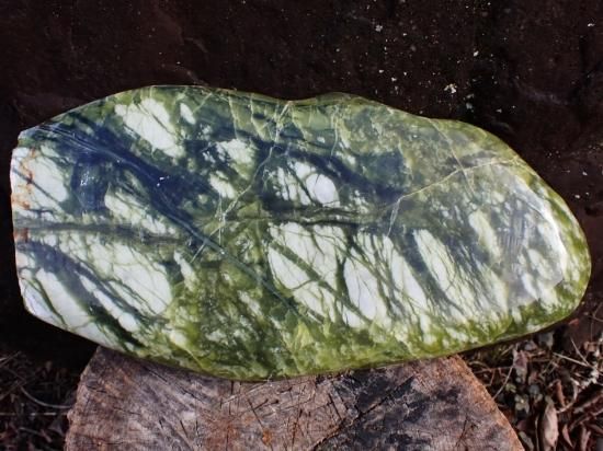 この原石の中国名は緑樹石。詳しいことは不明のままですが、常緑樹の緑は繁栄の象徴とされてきました。滅多に見かけない原石なので、加工用素材としてたいせつに保管してきました。従来価格より大幅に値下げしてあります。飾り台はついていません。