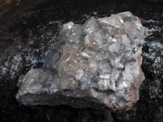 サイズ:約200x130x86mm、1660g。中国産。アメシストに似た15〜20mmほどのボタン状結晶の群晶からなるカルサイトのクラスターです。見かけることの少ない形と思います。カルサイトの成分の炭酸カルシウムの多くは、熱帯産のサンゴが自分の外骨格を作るために、海水中の炭酸ガスとカルシウムを体内で合成したものです。進化論的には彼らの登場によって、地球の空気中の炭酸ガス濃度が低下して、酸素を呼吸する生物の存続が可能になりました。カルサイトは人類の恩人のような鉱物です。