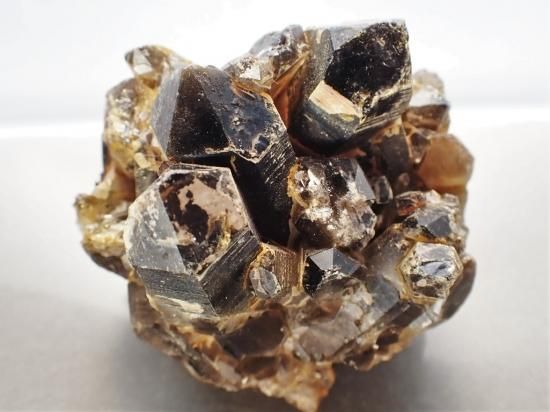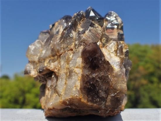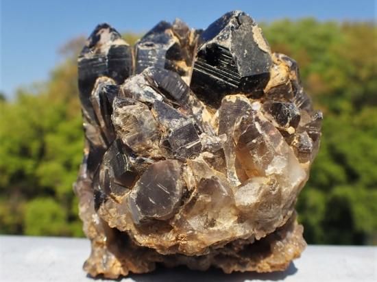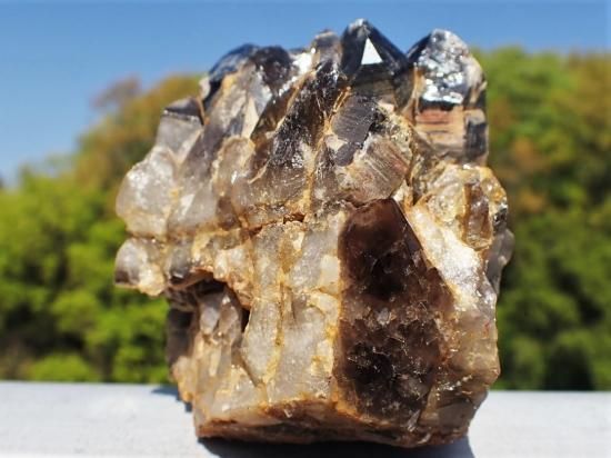 サイズ:約82x65x70mm、444g。 チベット産と思います。書道の墨のような色合いが魅力です。スモーキークォーツと黒水晶(モリオン)は鉱物名の境界が明確ではなく、いっぱんに透過光で見て光を通すものをスモークークォーツ、通さないものをモリオン(黒水晶)とよんでいます。黒水晶は邪気を吸着して、部屋を浄化する効果がことのほか高いされています。これらの原石の大きなものは、初心者向け解説は無用と思います。