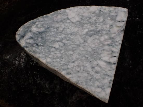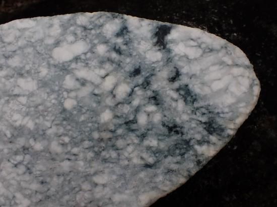 サイズ:約230x195x50mm、4.50kg。 青色の細かな脈が鱗模様のように入った圧砕翡翠です。大きな原石を引き割りして、3枚1組となっていたものの1枚です。このように珍しい色合いの日本翡翠は横川産に特有のものなので、横川産と思っています。横川は姫川を上流へとのぼって、姫川温泉という土地の近くにある姫川の支流で、近隣の大所川とともに、ヒスイハンターの間では隠れた翡翠原産地として知られています。当社製品としては高額になっていますが、それでも当社リサーチによる現地価格に比べて、お買得価格にしてあります。将来的には入手できなくなるであろう貴重品です。
