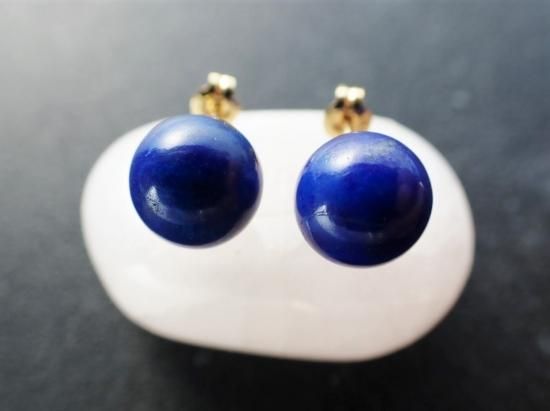 サイズ:約8mm丸玉。ポストの長さ約9mm。ポストもキャッチも18kゴールドを使用しています。ラピスラズリはアフガニスタン産、色むらが少ない原石から制作してあります。エジプトのツタンカーメンのマスクに使われたラピスも、日本の正倉院に保管されているラピスも、このピアスと同じアフガニスタン産というのが驚きです。国内メーカーのピアスパーツを仕入れて自社で制作しました。シンプルなデザイン、きれいな色合いのピアスですので、いつまでも飽きることなく愛用できます。