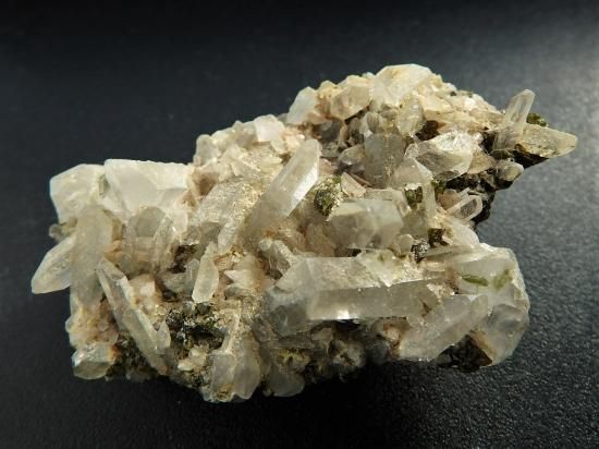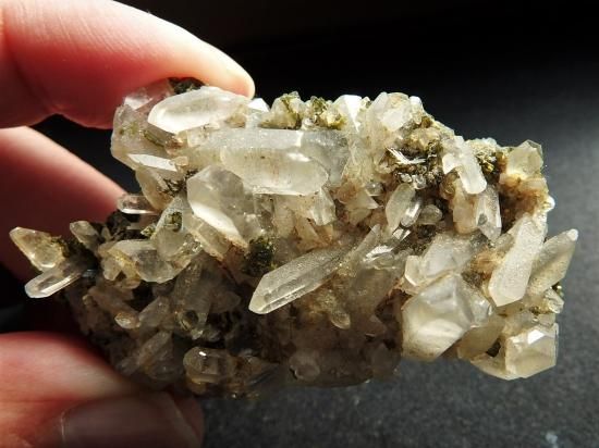 サイズ:約60x40x24mm、49g。ユニークな形状で知られる四川省美姑(スーチョワン・メイグー)産の水晶クラスターを、定価の5割引のアウトレット価格でお送りします。この産地の水晶は地質学的にも興味深く、海外のコレクターから注目されています。この産地の水晶はブラジル産などとは異なる特有の質感があって、しばらく眺めていると彼岸の風景がひらけてくるような気がします。苔に似た緑色のエピドートが随伴しています。表と裏と二つの顔を楽しめます。