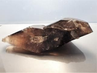 サイズ:約55x43x27mm、43g。中国福建省産スペサルタイト・ガーネットです。この産地のものはオレンジの色味が強く、しばしばスモーキークォーツを随伴しています。ガーネットは24面体や12面体の結晶形をしていて、色味も赤や橙色をした愛らしい鉱物。結晶形を同じくした14種類の鉱物のグループ名で、スペサルタイトはマンガン+アルミニウム+ケイ酸塩からなっています。和名は満礬柘榴石。「満」はマンガン、「礬」はアルミニウムを指していて、成分がそのまま鉱物名になっています。