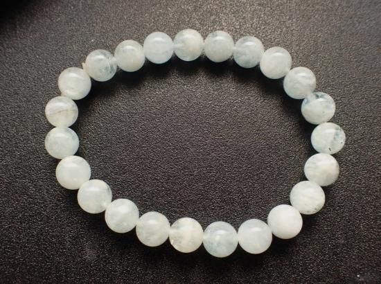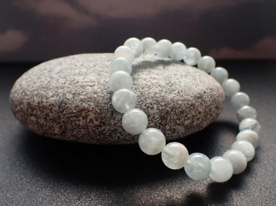 サイズ:約8mm玉、内径約16cm。オペロンゴム結び。写真の製品をお送りします。アクアマリンは水の色をした宝石。水が不浄なものを浄化し、生命を生み育むことから、浄化力にすぐれ、幸運をもたらす宝石とされてきました。水田稲作重視の日本文化では、祈願は降雨の要請と水害の防止が最重要なことがらで、水をつかさどる女神に対してなされました。分水嶺(水分・みくまり)・滝・水辺・港、・入り江はことごとくが女神の棲処で、彼女たちのパワーの色はクアマリン色をしていました。異性との出会いをうながし、幸せに暮らせるよう未来を整えてくれます。