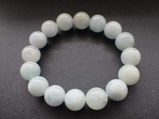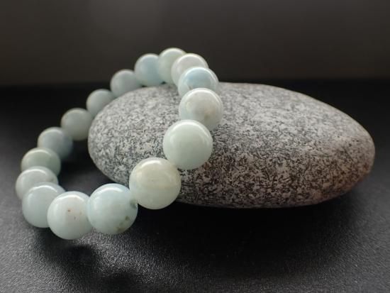サイズ:12mm玉、内径約16cm。オペロンゴム結び。写真の製品をお送りします。アクアマリンは水の色をした宝石。水が不浄なものを浄化し、生命を生み育むことから、浄化力にすぐれ、幸運をもたらす宝石とされてきました。水田稲作重視の日本文化では、祈願は降雨の要請と水害の防止が最重要なことがらで、水をつかさどる女神に対してなされました。分水嶺(水分・みくまり)・滝・水辺・港、・入り江はことごとくが女神の棲処で、彼女たちのパワーの色はクアマリン色をしていました。異性との出会いをうながし、幸せに暮らせるよう未来を整えてくれます。