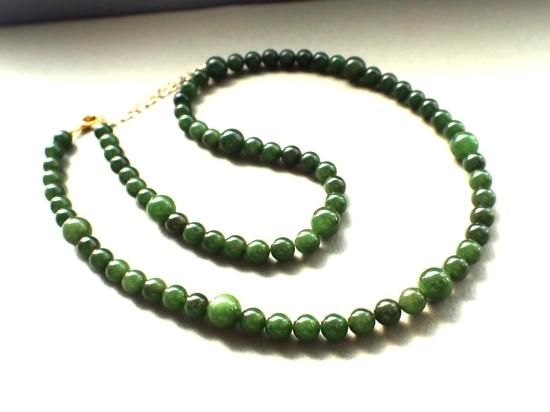 中華5千年の歴史をつうじて最高の玉(ぎょく)とされてきたのがネフライト。軟玉翡翠とよばれてきました。仁・義・勇・正・智の五徳が備わる宝石とされ、ネフライトを愛用すると他者の信頼を得たり、金銭運が向上するなど幸運にめぐまれた日々をおくれると伝えられてきました。やさしくて力強いパワーを宿したパワーストーンです。旧来のストックなのでアウトレット価格を定価の半額にしました。お送りするのはネックレスのみです。写真に写っている翡翠原石などは製品に付属していません。