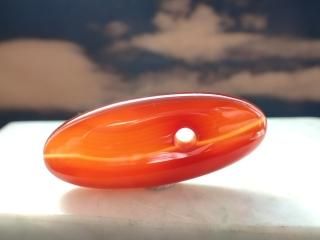 サイズ:管玉約24-28mm、四角15mm、丸玉12-15mm、紐を含む全長約100cm。この製品はアンティークと聞いていますが定かではありません。台湾がチベット同様観音信仰の盛んな土地だった縁で、台湾にジービーズ(西蔵天珠)が大流行した折り、ジービーズといっしょに台湾に紹介されて、世界中のビーズファンが注目するようになりました。この製品はネパールで買い付けてきました。