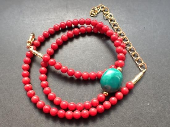 57、ターコイス+バンブーコーラル4mm、40cm \8,000→5割引\4,000
