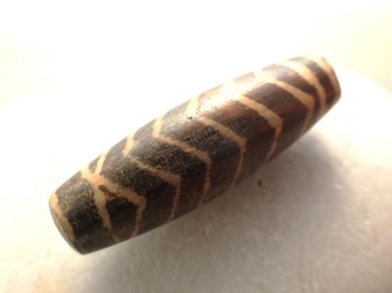 サイズ:約33x10mm。写真の製品をお送りします。パムテックビーズは椰子など木の化石を素材にジービーズ(西蔵天珠)と同じ技法で作られています。おもにヒマラヤ山脈の東方、ミャンマーの山岳民の間で、不運・災難を避ける魔法のビーズとして愛用されています。世界中のビーズ愛好家やお守りグッズファンの間で、ジービーズをしのぐほどの人気があります。パムテックビーズは制作後長い年月が経過しています。素材の性質上小さな欠けや傷がありますが不良品ではありません。あらかじめご理解ください。