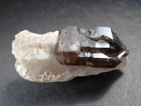 サイズ:約93x38x42mm、169g。水晶ポイントにエレスチャルが寄宿しているというか、発達途上のエレスチャルです。このままエレスチャルが結晶を成長させると水晶ポイントはエレスチャルの内部に呑まれていきます。レスチャルへの理解を深める上で興味深い標本です。