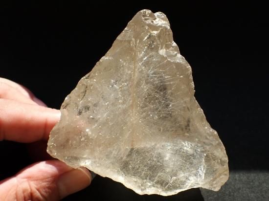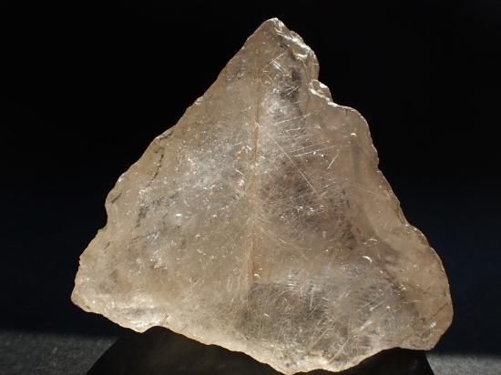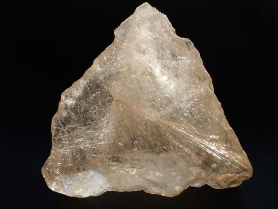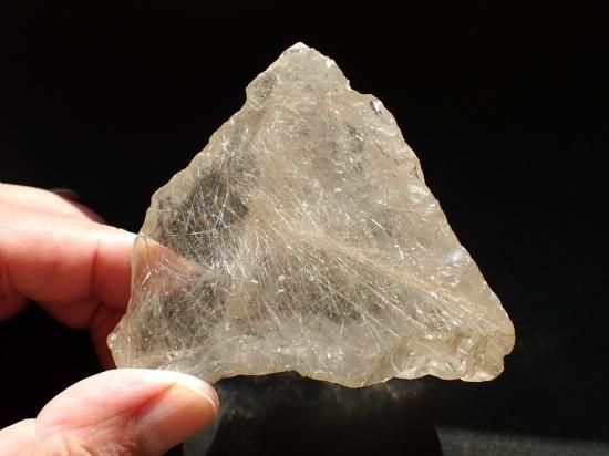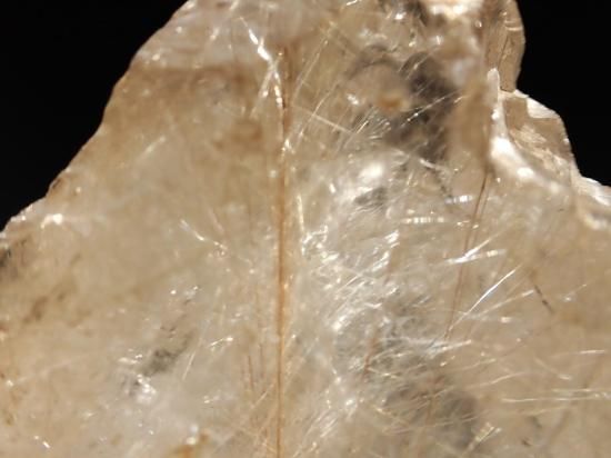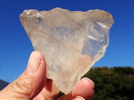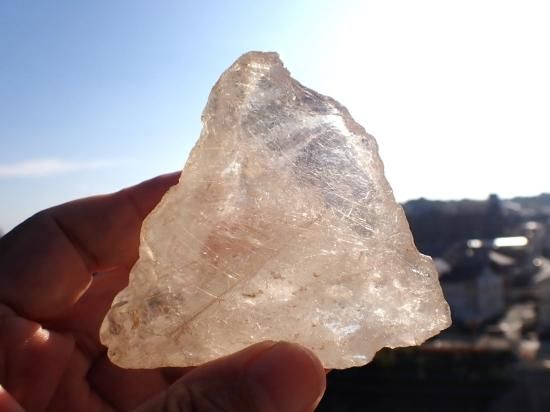 サイズ:約80x70x38mm、204g。ブラジル産水晶原石です。縦一文字に数本がよりあわさったかのような直線線状ルチルが内包されています。原石の内側全体に細い針状ルチルが多数入っていて光線を反射してキラキラと輝きます。めったに出会えない原石です、末永く宝物になると思います。