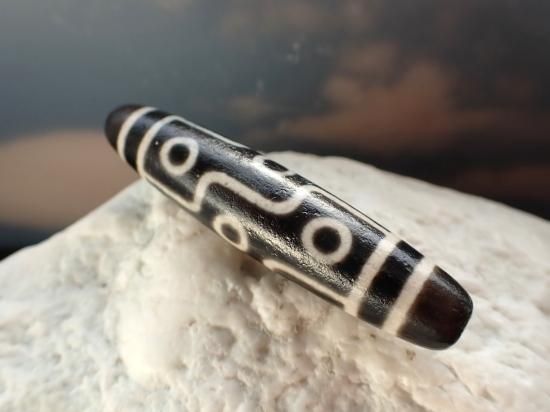 サイズ:約58x13mm。9眼天珠は9が「陽」の最大数であることから最強のジービーズとされてきました。仏教的には五智如来と四仏母を象徴し、七福八徳即生するといわれています。自社コレクションと新規入荷分をともにアウトレットセールの半額にしてあります。お守りとして愛用するほかに、ネックレスに加えたり、根付けに加工するなど、アクセサリーとして活用できます。