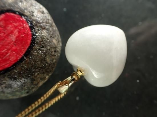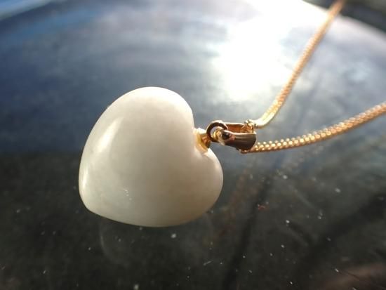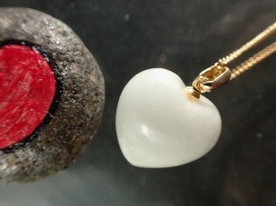 日本翡翠のふっくらとした可愛いハートです。ペンダントとしてお楽しみいただけます。ハート(心臓)は真心が宿る場所。ハート型の製品は愛と幸運のタリズマン(お守り)として古くから愛好されてきました。写真の製品をお送りします。