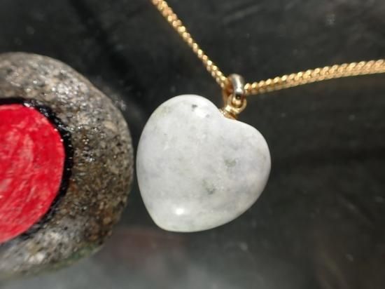 日本翡翠のふっくらとした可愛いハートです。ペンダントとしてお楽しみいただけます。ハート(心臓)は真心が宿る場所。ハート型の製品は愛と幸運のタリズマン(お守り)として古くから愛好されてきました。写真の製品をお送りします。