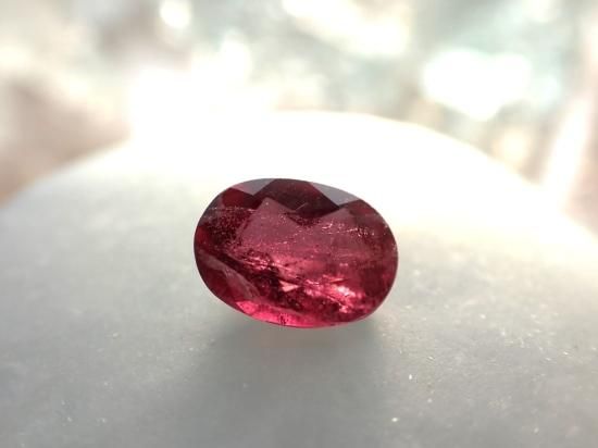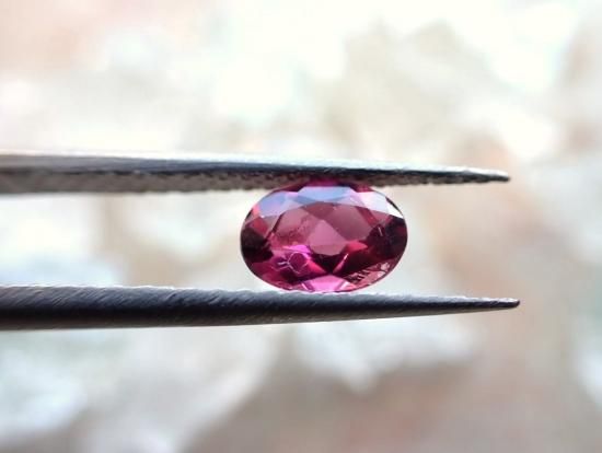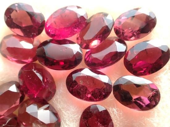 サイズ:約5x7mm、オーバルファセット・カット。写真は複数個写っていますがお送りするのは1個です。在庫数25点。在庫数6セット限り。ルベライトはワインに似た赤色のトルマリン。これらのルースは香港のジュエリーショーなどに何度もでかけて集めてきたルースです。あるていどの量をまとめて製作されたルースのため、よくよく見ると小さなクラックが入った品もふくまれています。ルースはアクセサリーに加工しなくても、数種類を集めて眺めているだけも心豊かな気持ちになれます。