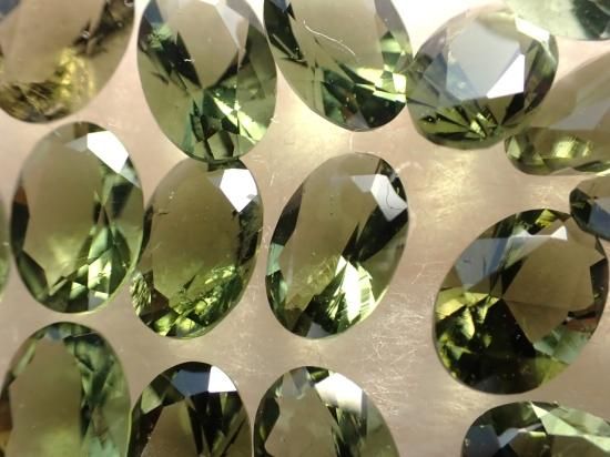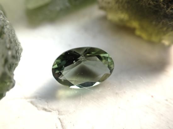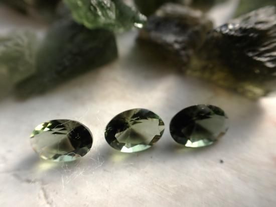 サイズ:約5x7mm、1個約0.6ct。オーバルファセット・カット。お送りするルースは1個です。写真の原石類は製品に付属していません。写真のルースとほぼ同じ製品をお送りします。チェコのモルダバイト鉱山から原石を直接仕入れて、当社指定の工場でカットしました。本物のモルダバイト製品です。安心してお求めください。在庫数40個。