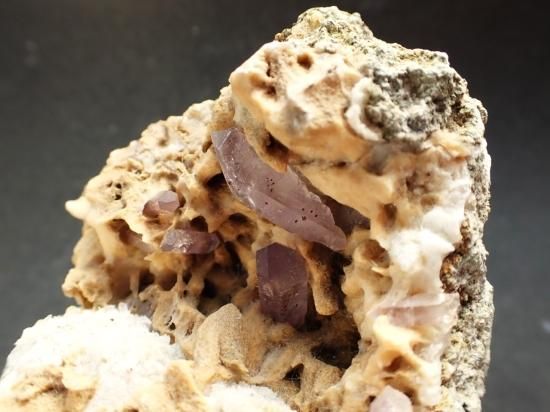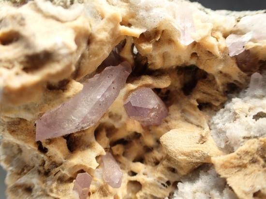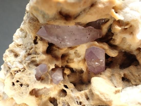 サイズ:約66x53x64mm、277g。イタリア、サルジニア島産のアメシストで、小サイズで柱状、淡い色合いが特徴です。ベラクルス・アメシストにいくらか似ています。個人のミネラル・ハンターによる採集品なので、市場では見かけません。