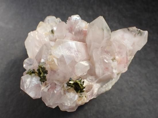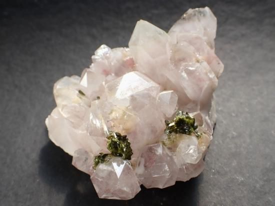 サイズ:約100x83x41mm、378g。 ユニークな形状で知られる四川省美姑(スーチョワン・メイグー)産の水晶クラスターを、定価の5割引のアウトレット価格でお送りします。水晶クラスターが身近にあると心根が安定してくるので、世の中が明るくなります。嬉し楽しの気持ちが幸運を引き寄せるので、ラッキーチャンスに恵まれやすくなります。水晶クラスターのたくさんのパワー効果のうちの一例です。エピドートの随伴がこの産地のクラスターの特徴です。写真のミネラルスタンドは製品に付属していません。