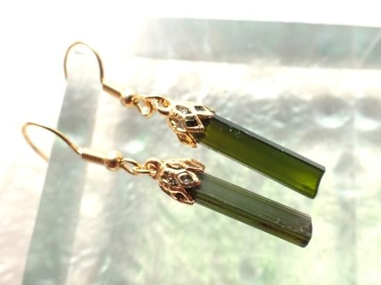サイズ:全長約18x22mm。ネパール産グリーン・トルマリンのピアスです。在庫数7点、写真とよく似た製品をお送りします。ピアス部分の金色のパーツは金属アレルギーを発症しにくい医療用サージカルステンレスを使用しています。ネパール産のグリーン・トルマリンは透明度の高いジェムグレード。入手しにくい鉱物結晶です。天然石の台は製品に付属していません。