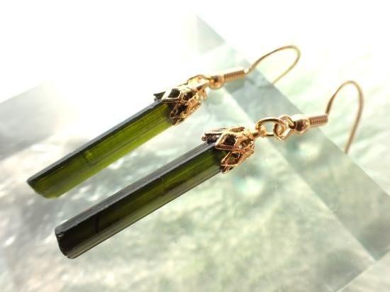 サイズ:全長約27x28mm。ネパール産グリーン・トルマリンのピアスです。在庫数2点、写真とよく似た製品をお送りします。ピアス部分の金色のパーツは金属アレルギーを発症しにくい医療用サージカルステンレスを使用しています。ネパール産のグリーン・トルマリンは透明度の高いジェムグレード。入手しにくい鉱物結晶です。天然石の台は製品に付属していません。