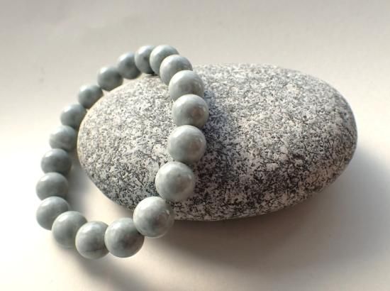 サイズ:約10mm、内径約16cm、全長約19cm。 淡い青緑色をしています。落ち着きがあって、気品のある面持ちをしています。樹脂浸透していない、未処理未染色の新潟県糸魚川市産翡翠原石(糸魚川ヒスイ)を使用しています。オペロンゴム結び。コロナウイルス騒動以前に香港の特約工場で製作したため、安価に提供できています。原石と加工賃の値上がりを考慮すれば、2−3倍の価値があります。