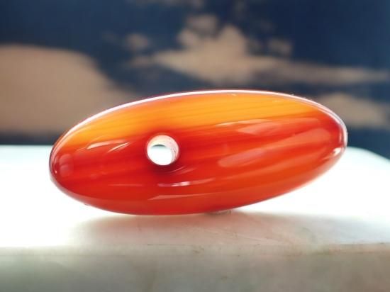 サイズ:約50x20x11mm。ブラジル産原石から制作しました。レッドアゲートの朱色は古来「辟邪(へきじゃ)の赤」とされてきました。外出先での事故を避ける、不運なめに遭わないようにする、邪霊や悪霊たちの介入を遮断する、他者からの中傷・嫉妬・非難・悪意を回避するなどが辟邪の意味です。レッドアゲートはネガティブな要素に邪魔されず、目的へと向かって情熱を注げるよう手助けしてくれる守護石です。写真の製品をお送りします。最後の写真はロービキ紐を付けた場合のイメージ写真です。