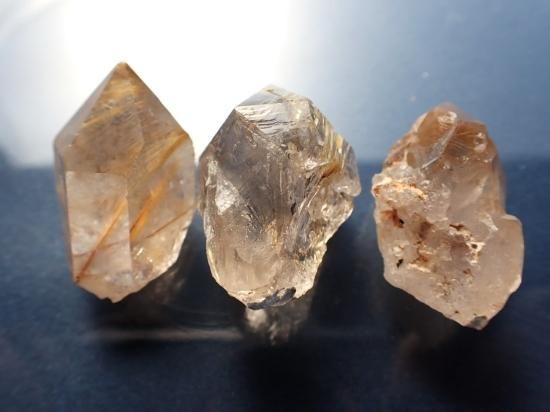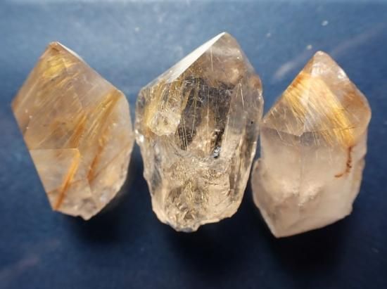 サイズ:約39-26mm。ブラジル産。 10年以上前の価格で1本1800円、3本セットにして5割引きにしました。現在の市場価格はもっと高額と思います。人為的に研磨していない天然のナチュラルポイントです。小サイズながらそれぞれに個性豊かな顔つきをしています。パワーの訴求力も相当なものです。希少性の高いアクセサリーのパーツとして活用できます。どの鉱物にも言えることですが、商品価値があって市場に流通する鉱物は産出する全体量からみればわずかな量。大部分はジャンク扱いです。これらルチルクォーツのポイントもルチルクォーツの産出量からすればほんの少量、再度の出会いは難しいほどに貴重です。