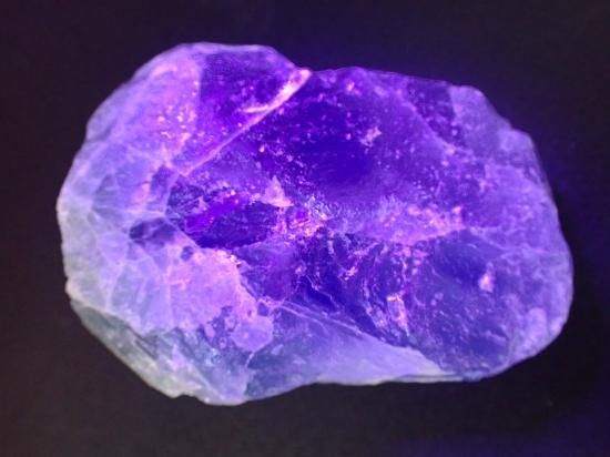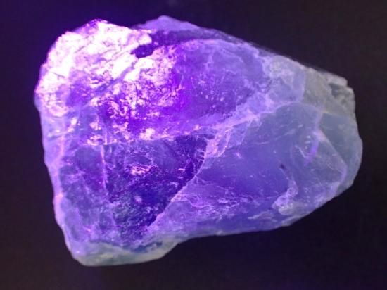 サイズ:約74x58x36mm、272g。中国産。市販のペンライト状紫外線ランプをあてるとあざやかに蛍光発色します。
