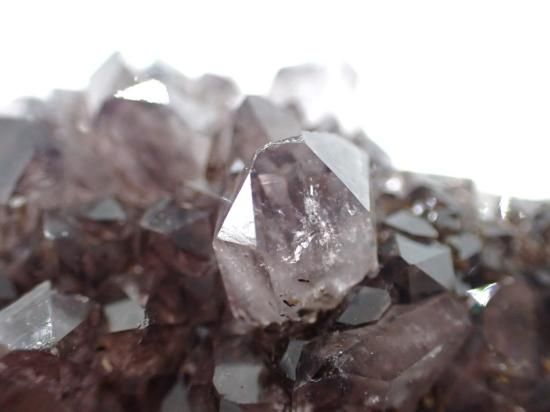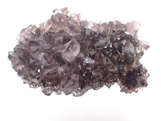 サイズ:約60x33x31mm、52g。ブラジル産と聞いていたのですが隣国ウルグアイ産と思います。地つづきの土地です。アメシストは濃い紫色で垂面だけが密集したブラジル産原石がよく知られていますが、アメシストは多種多様な鉱物、色合いは黒味の強いものから藤色・赤・茶・桃色・白など多岐にわたり、結晶の大きさも大小様々。これらの違いに注目するとサボテンなど特定ジャンルのアイテムを集めるのと同様、コレクションする楽しみを味わえます。鉱物たちの形や色の神秘さに魅了されると、アメシストやカルサイトの多様さに驚きあきれ、彼らのことをとても愛しく感じられるようになります。アメシスト・セレクトは当社で長の年月をかけて収集してきた変種のアメシストのコレクションです。