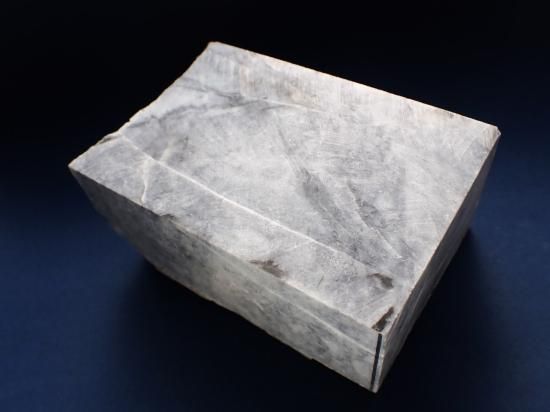 サイズ:約97x60x44mm、829g。黒翡翠に分類されることもある灰色味の強い色合いの原石です。片面に外皮が残っています。新潟県糸魚川地方で採集された日本翡翠(糸魚川ヒスイ)原石です。樹脂浸透、染色してありません。日本翡翠は水に濡らすと休眠から覚めるようなところがあって、生き生きと輝き、パワーに満ちた姿を見せてくれます。窓辺に飾るのにほどよい大きさです。