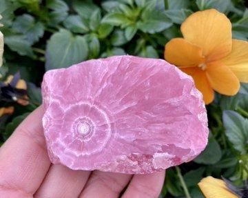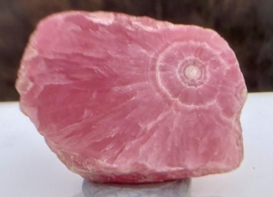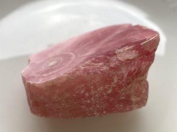 大きく厚みのある見事な原石です。甘いピンク色もつややかで申し分ない色味。