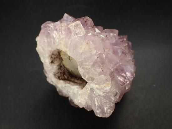 サイズ:約62x47x57mm、159g。ブラジル産。鍾乳石状に発達したアメシストの内側が抜け落ちて内部に泥が詰まっているようです。
