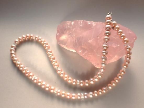 淡水パールのネックレス・シリーズです。淡水パールは形状からライスパール、ポテトパールなどに分けられ、真円に近いものほど高価とされています。淡水パールは普段使いのアクセサリーとして好まれています。品がよくて日本人の肌をいっそう美しく見せてくれます。お送りするのはネックレスのみです。写真に写っている原石などは製品に付属していません。モニターやスマホ画面では実物と多少色味が異なる場合があります。