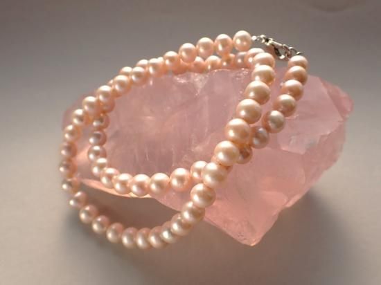 淡水パールのネックレス・シリーズです。淡水パールは形状からライスパール、ポテトパールなどに分けられ、真円に近いものほど高価とされています。淡水パールは普段使いのアクセサリーとして好まれています。品がよくて日本人の肌をいっそう美しく見せてくれます。お送りするのはネックレスのみです。写真に写っている原石などは製品に付属していません。モニターやスマホ画面では実物と多少色味が異なる場合があります。
