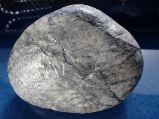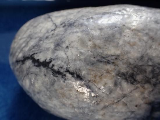 サイズ:約120x90x55mm、1006g。黒翡翠の一種で灰色の地に黒い網目模様が入っています。重厚感が魅力的です。新潟県糸魚川地方で採集された日本翡翠(糸魚川ヒスイ)原石です。樹脂浸透、染色してありません。日本翡翠は水に濡らすと休眠から覚めるようなところがあって、生き生きと輝き、パワーに満ちた姿を見せてくれます。窓辺に飾るのにほどよい大きさです。