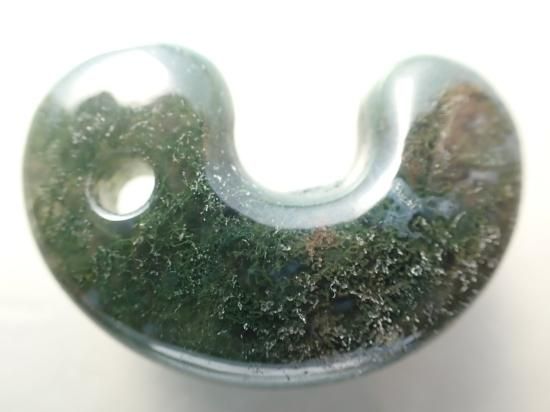 サイズ:約38x26x10mm。インド産の未処理未染色の原石を使用しています。モスアゲートは白色や半透明の玉髄(カルセドニー)に緑泥石などが内包された宝石。内包物の形状が苔に似ているので苔入りメノウと呼ばれています。モスアゲートは「気」を降ろして安定させる作用が強いパワーストーン。困難さに勇気をもって立ち向かえるよう心を調整してくれます。モスアゲート特有のカン(小さな空隙)が表面にでているものもありますが、傷ではありません。モスアゲートは内包物の量によって濃淡の差が生じます。