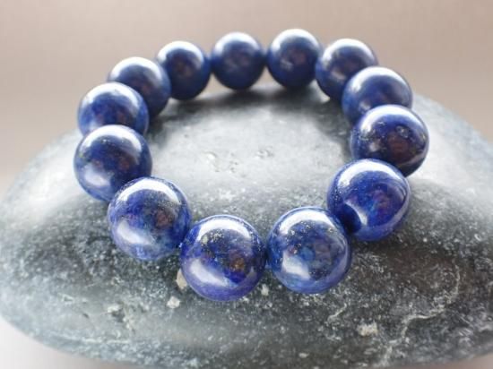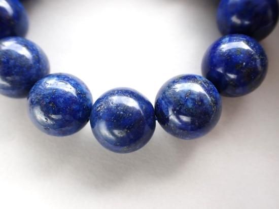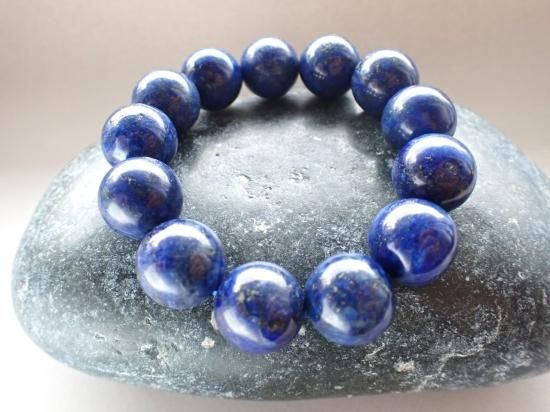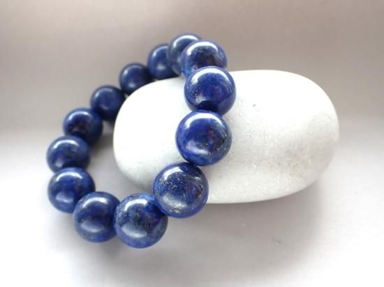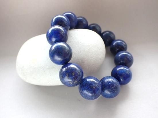 サイズ:径16mm玉、内径17cm、85g。オペロンゴム結び。無染色のアフガニスタン産原石から製作されています。よくよく見ると小さな傷があるビーズが含まれていますが立派な製品です。十数年前に香港のジュエリーショーで見本として仕入れて保管してきました。 ラピスラズリは水晶やメノウと違って安価な天然石ではありません。こので製品ではやや黒味があるため大幅に値引きしてあります。外出時に身に付けなくても、強運を招くつもりになって家庭内で愛用すると幸運体質が獲得できていきます。