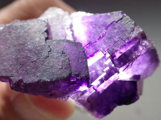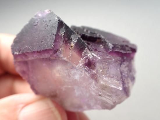 サイズ:約90x50x50mm、242g。定価の5割引のアウトレット価格でお送りします。人気の品を卸売価格で入手できる機会はめったにありません。フローライトファンにはお馴染みのメキシコ産のパープルフローライトです。大小の四辺形が複雑に入り組んでいます。強い透過光でみると、厚みが薄い箇所や縁(へり)の部分ではフローライトならではの鮮やかな紫色をみることができます。フローライトはカルシウムとフッ素の化合物、フッ化カルシウムの結晶。石灰岩地帯など比較的地殻の浅い部分で結晶するので、世界各地に産地があります。同じ分子組成なのに、地域によってそれぞれの個性があり、形状や結晶が異なるのがとても不思議です。写真の製品をお送りします。