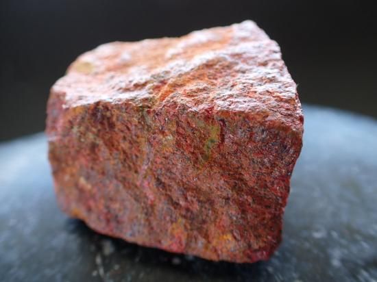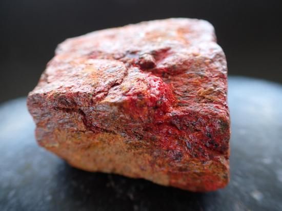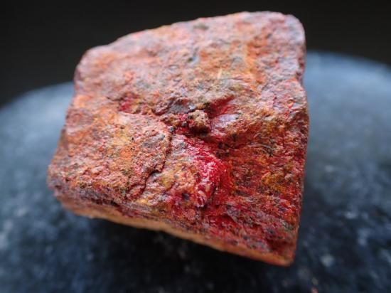 サイズ:約34x31x21mm、55g。 中国産。不純物の少ない得がたい標本です。成分はひ素+硫黄。触れるだけで死んでしまうほど猛毒ではないけれど、管理を慎重にして、子供の手の届かない場所に保管してください。光線に弱いのでアルミホイルなどで包んで冷暗所に保存します。顔料鉱物で岩絵の具として使用されています。