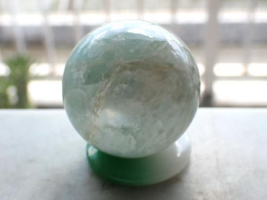 サイズ:約33mm、51g。ブラジル産のアクアマリン丸玉です。コマーシャルグレードの製品です。無傷ではありません。翡翠に似たクォーツアイトのヘキを玉台としてお付けしますが、地震などに備えて落ちないような場所に保管してください。アクアマリンは心にたまったよごれを浄化して、幸運を招くよう整えてくれる宝石。コレクションに加えておくと、アクアマリンと気持ちが通じるにつれて、明るい光が胸の内側で輝くようになります。写真に写っている海岸漂着石は製品に付属していません。