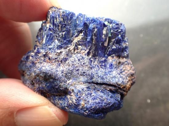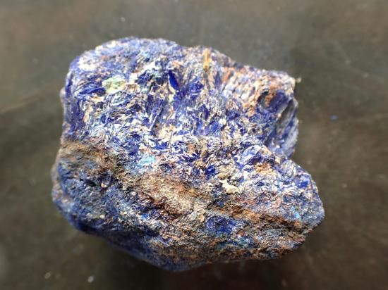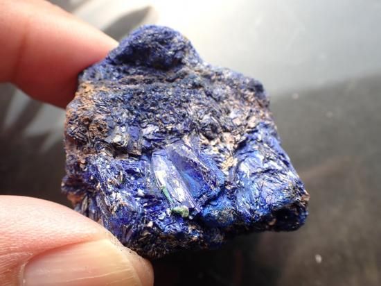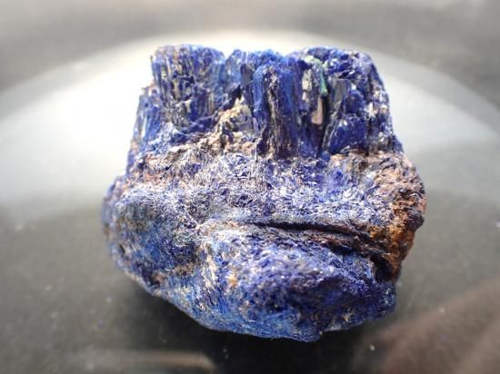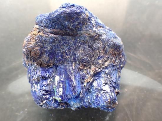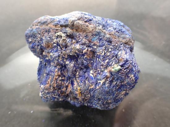 サイズ:約41x34x24mm、51g。モロッコ産で不純物の少ない高品位のアズライト原石です。アズライトは青色顔料として古代から愛用されてきた鉱物で、銅を製錬するのにも用いられます。アズライトはマラカイトと同じ成分からなっていて、銅製彫像に緑青が浮くように成分の銅が炭酸ガスと反応してマラカイトに変わっていきます。