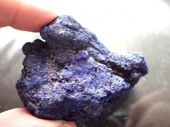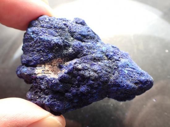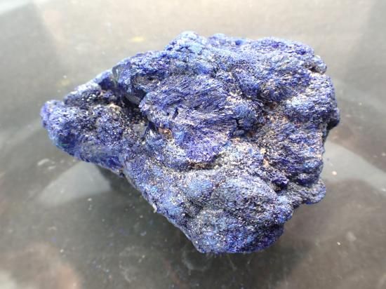 サイズ:約54x40x21mm、70g。モロッコ産で不純物の少ない高品位のアズライト原石です。アズライトは青色顔料として古代から愛用されてきた鉱物で、銅を製錬するのにも用いられます。アズライトはマラカイトと同じ成分からなっていて、銅製彫像に緑青が浮くように成分の銅が炭酸ガスと反応してマラカイトに変わっていきます。